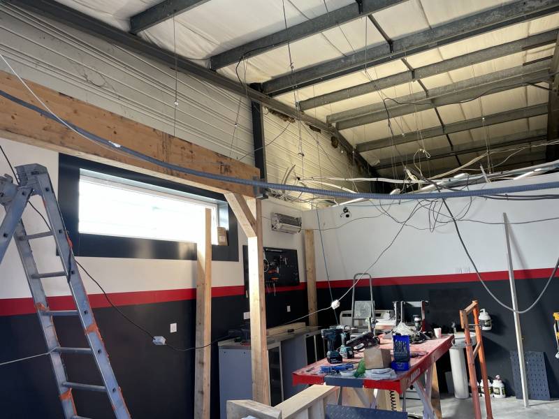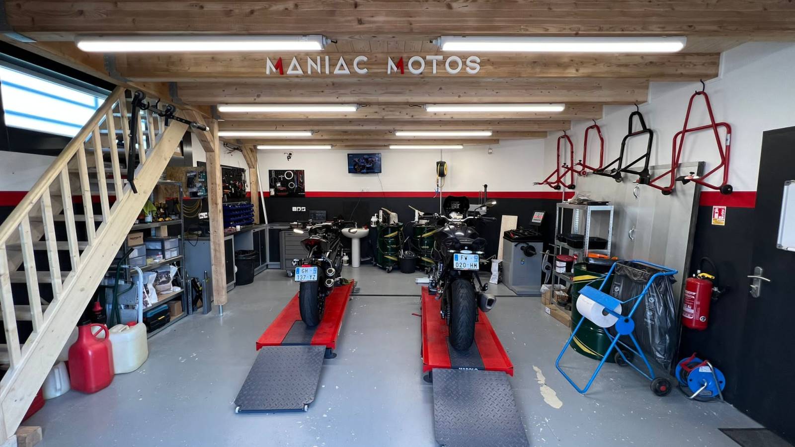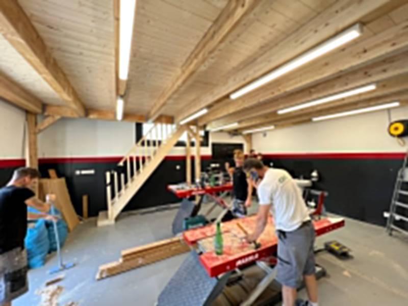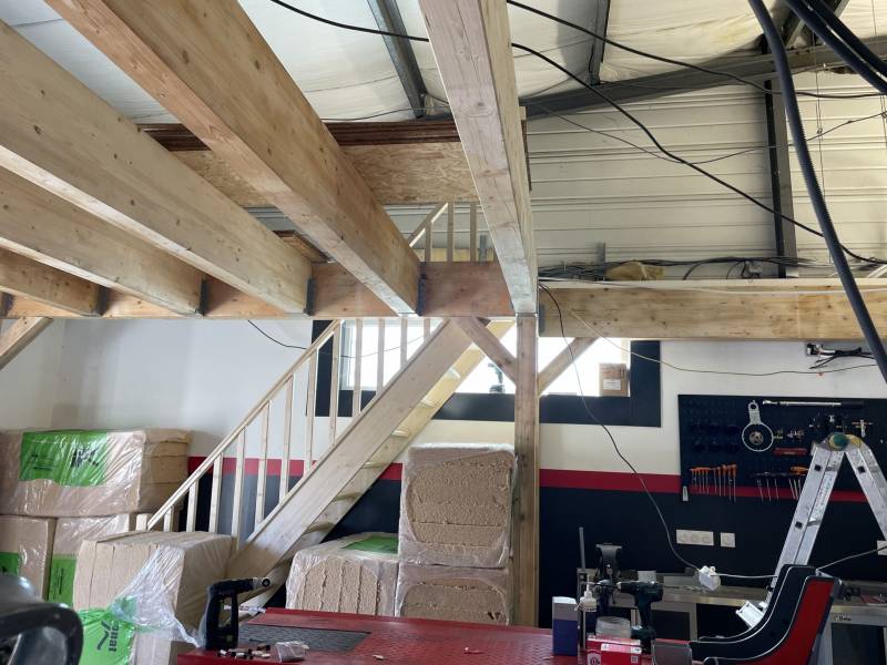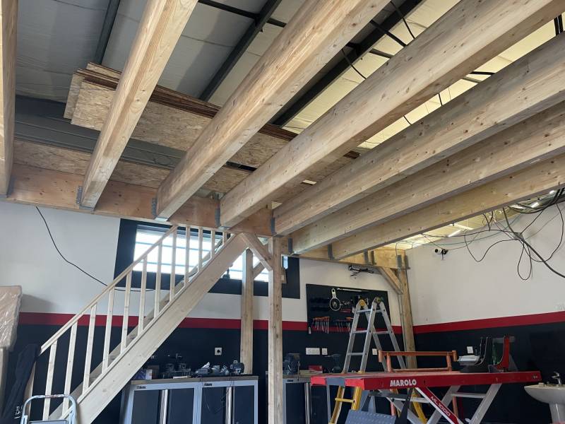 JDF Menuiserie a réalisé la création d'une mezzanine et escalier en bois pour un garage professionnel à Fréjus.