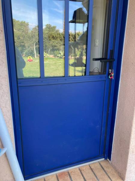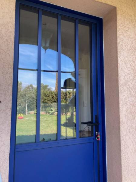 Fourniture et pose d'une porte d'entrée personnalisé pour rappeler le style "verrière" à Besse sur issole dans le Var.